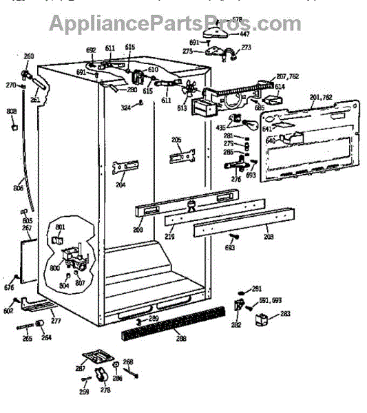 Parts for Ge TBX22PRYFFWW: Cabinet Parts