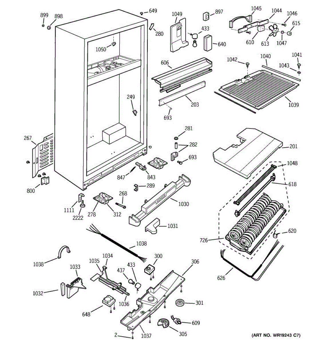 Seals the freezer bottom compartment to maintain temperature and prevent frost buildup. Replace if torn, cracked, or loses seal. Verify fit with model.