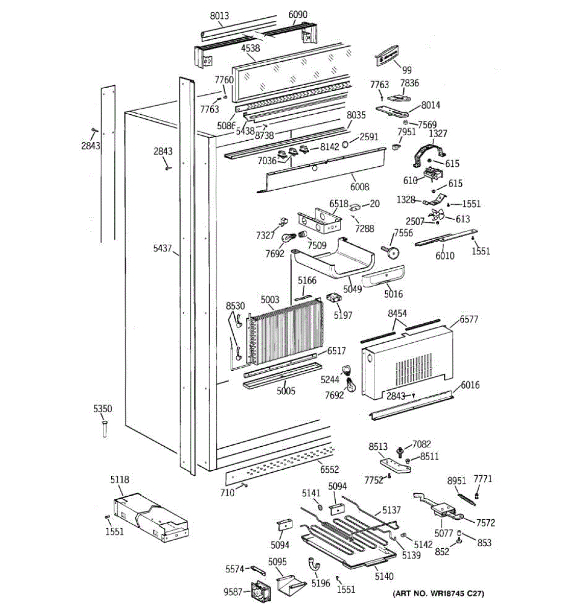 This evaporator cover is the plastic housing trim that protects the evaporator coil and helps direct airflow in the freezer compartment for consistent cooling and defrost performance. It replaces a cracked, broken, or missing cover. What it does: