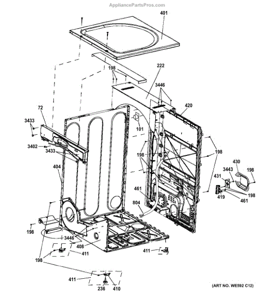 This factory screw secures dryer panels and internal components, keeping assemblies tight and aligned so the machine operates safely and without vibration or rattling.