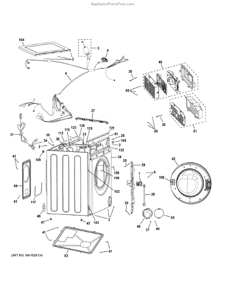 The Door Assembly is an OEM part for GE washers. It is the complete unit that covers the opening of the washer tub, including both the inner and outer doors. The door assembly allows for convenient loading and unloading of laundry items while maintaining a security seal during operation.