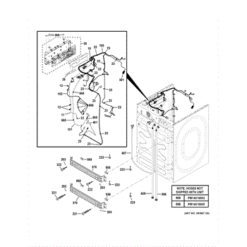 Shipping bracket stabilizes washer internal components during transport and delivery. Removes after installation. Replace if damaged, broken, or missing.