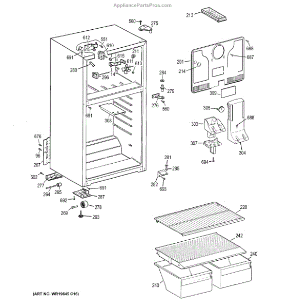The Foam Duct is an OEM replacment part for GE refrigerators. It is an insulating conduit located within the fresh food compartment that helps direct chilled air circulation from evaporator coils throughout interior shelves and bins. The foam duct plays an important temperature regulation role by strategically venting cool air where needed. Causes can involve cracks in rigid duct walls, compressed insulation, or obstructions within the airflow pathway restricting proper circulation Symptoms of a defective duct include: