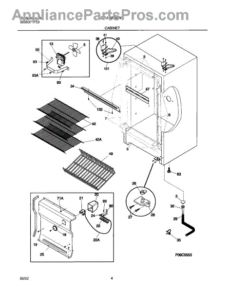 The Evaporator Fan Blade is an OEM part for Frigidaire refrigerators, designed to circulate air over the refrigerator coils and through the food compartment. The fan blade works in conjunction with the evaporator fan motor, and together, they play a key role in the cooling process by distributing cool air evenly throughout the refrigerator and freezer.