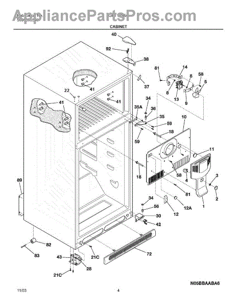 This evaporator fan cover protects and directs airflow around the evaporator fan to help maintain proper cooling and reduce fan noise. Replacing a damaged cover restores airflow and helps prevent fan interference from ice or debris. What it does: