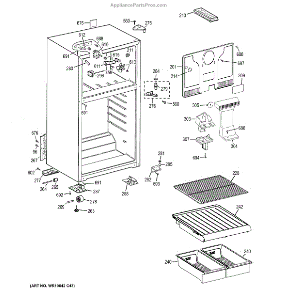The Foam Duct is an OEM replacment part for GE refrigerators. It is an insulating conduit located within the fresh food compartment that helps direct chilled air circulation from evaporator coils throughout interior shelves and bins. The foam duct plays an important temperature regulation role by strategically venting cool air where needed. Causes can involve cracks in rigid duct walls, compressed insulation, or obstructions within the airflow pathway restricting proper circulation Symptoms of a defective duct include: