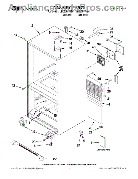 The Leveling Leg is an OEM replacement part for Whirlpool refrigerators. It is one of four legs situated internally at the base corners for proper tilt positioning. It raises or lowers each leg independently to stabilize units on uneven kitchen floors. Causes of replacement consist of wear from continual torque required during positioning processes. Thread damage or corrosion buildup attributable to floor locations over extended use necessitates periodic renewal as well. Symptoms involve: