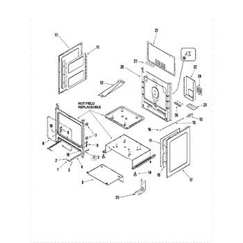 The hinge receiver mounts to the range or wall-oven frame and forms the pocket that the door hinge arm slides into. Replacing a worn receiver restores smooth door action and helps the door close fully for a proper heat seal.