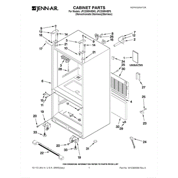 The Leveling Leg is an OEM replacement part for Whirlpool refrigerators. It is one of four legs situated internally at the base corners for proper tilt positioning. It raises or lowers each leg independently to stabilize units on uneven kitchen floors. Causes of replacement consist of wear from continual torque required during positioning processes. Thread damage or corrosion buildup attributable to floor locations over extended use necessitates periodic renewal as well. Symptoms involve: