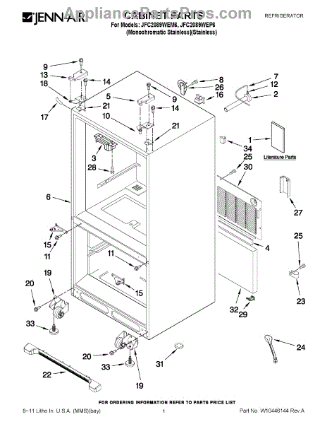 The Leveling Leg is an OEM replacement part for Whirlpool refrigerators. It is one of four legs situated internally at the base corners for proper tilt positioning. It raises or lowers each leg independently to stabilize units on uneven kitchen floors. Causes of replacement consist of wear from continual torque required during positioning processes. Thread damage or corrosion buildup attributable to floor locations over extended use necessitates periodic renewal as well. Symptoms involve: