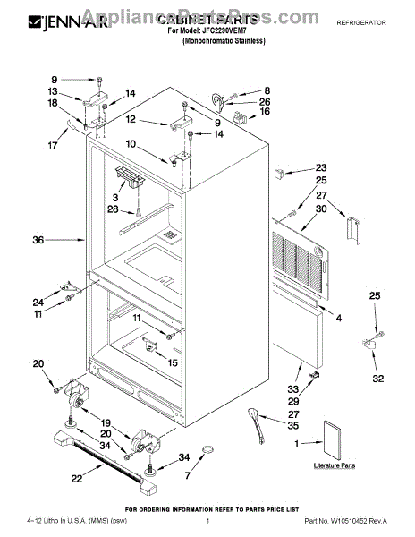 The Leveling Leg is an OEM replacement part for Whirlpool refrigerators. It is one of four legs situated internally at the base corners for proper tilt positioning. It raises or lowers each leg independently to stabilize units on uneven kitchen floors. Causes of replacement consist of wear from continual torque required during positioning processes. Thread damage or corrosion buildup attributable to floor locations over extended use necessitates periodic renewal as well. Symptoms involve: