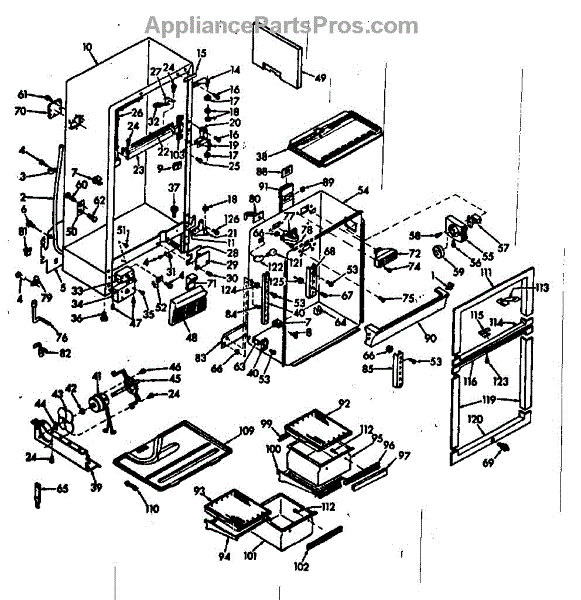 Parts for Kenmore 106.6686430 (1066686430, 106 6686430): Cabinet Parts