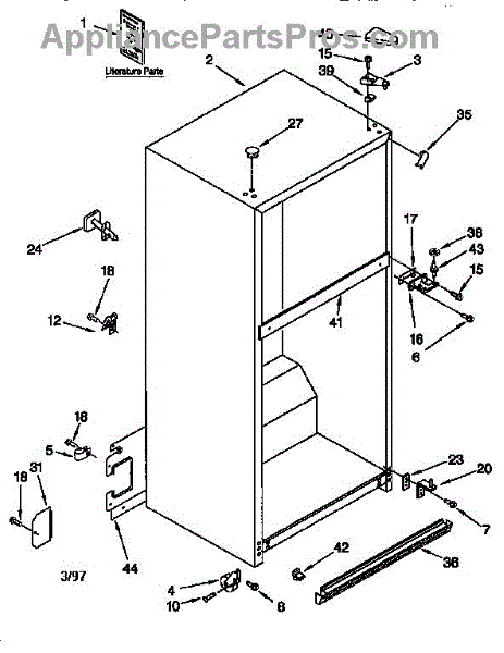 The Center Door Hinge is an OEM replacement part for Whirlpool refrigerators. As one of several hinges supporting each refrigerator door panel, it works to guide opening and closing movements. Causes of a faulty center hinge tend to be wear from years of continuous operation with near-daily door cycles. Complete failure could also occur in the event of physical damage sustained during a repair or installation issue. Symptoms include:
