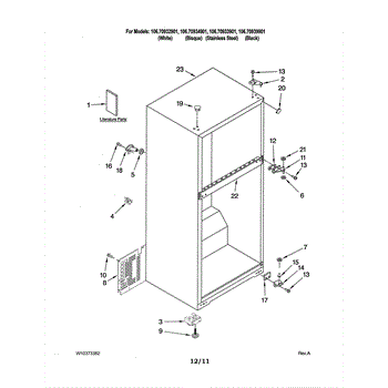 A factory fastener used to secure appliance components and panels. Replacing a missing, rusted, or stripped screw restores a solid, rattle-free fit and helps keep brackets, housings, and covers properly aligned for reliable operation.