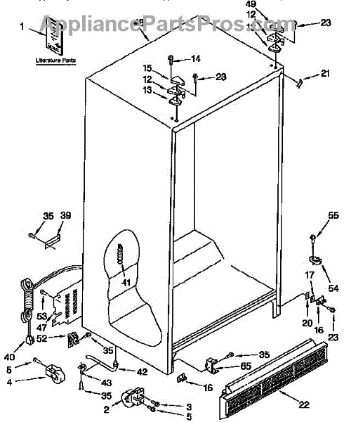 Rear access cover panel for refrigerators. Shields compressor and electrical components from dust and debris. Replace if cracked, damaged, or worn.
