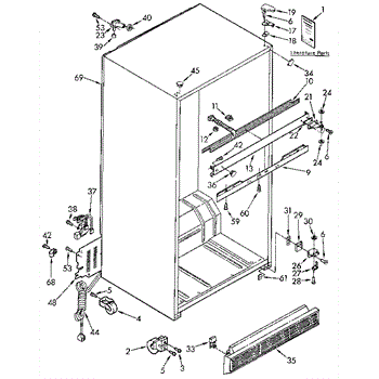 This screw is used to secure the handle end cap to the center of the door. The screw size measures 8-18 x 1/2 inches.