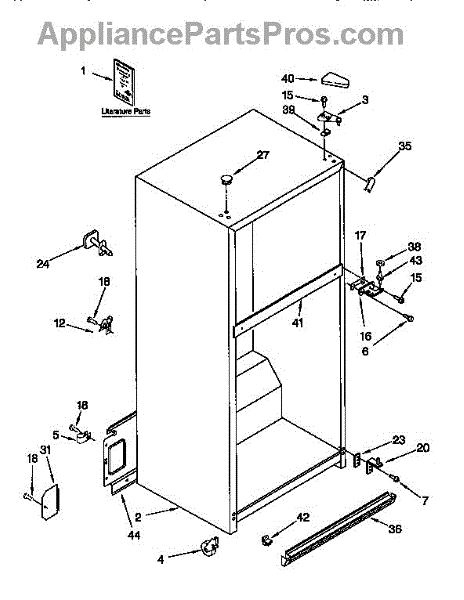 Parts for Kenmore 106.9658221 (1069658221, 106 9658221): Cabinet Parts