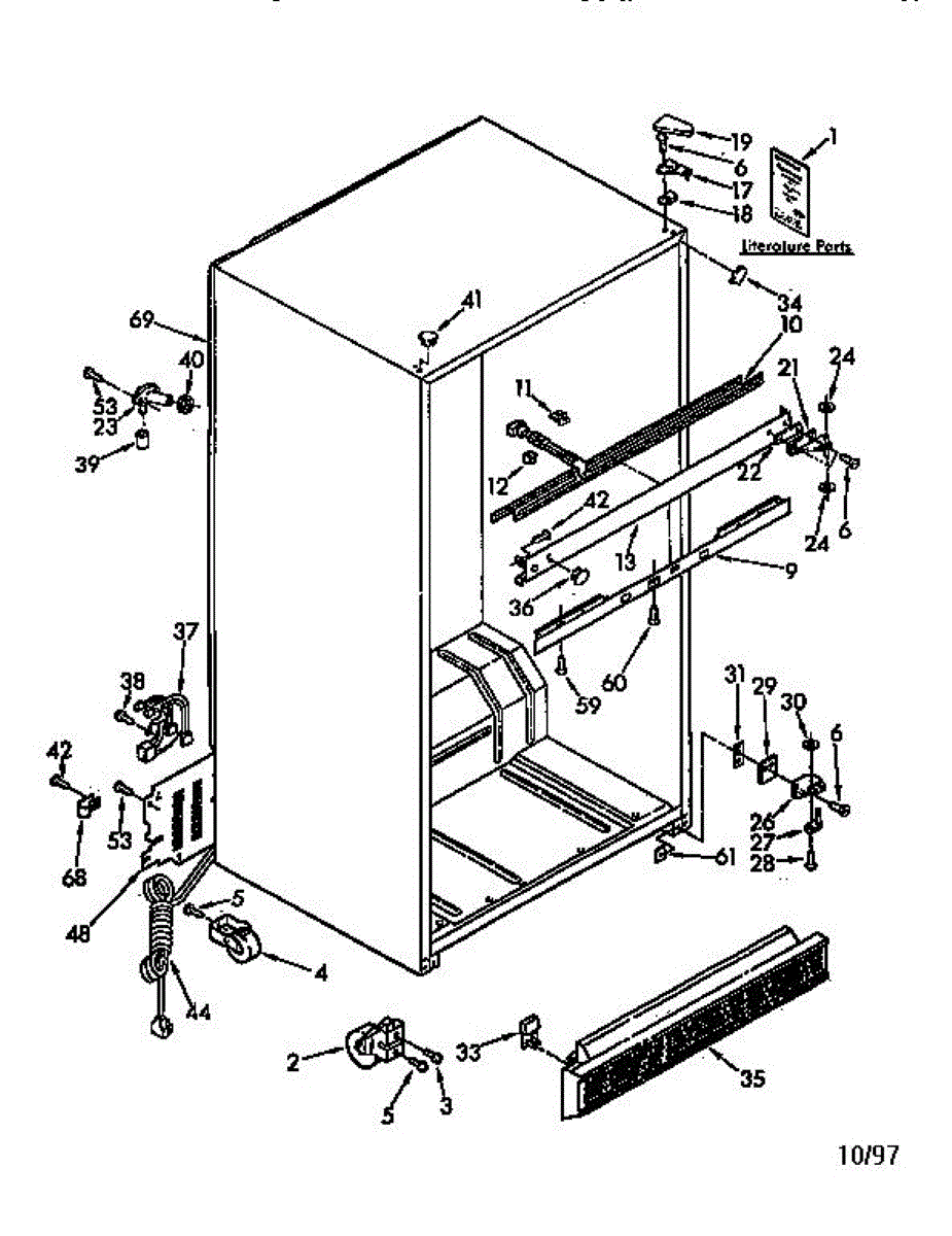 Seals refrigerator door to prevent air leaks and temperature loss. Replace when worn, cracked, or no longer forming a tight seal. Verify fit by model.