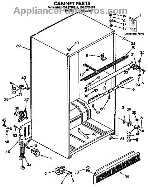 Parts for Kenmore 106.9728581 (1069728581, 106 9728581): Cabinet Parts