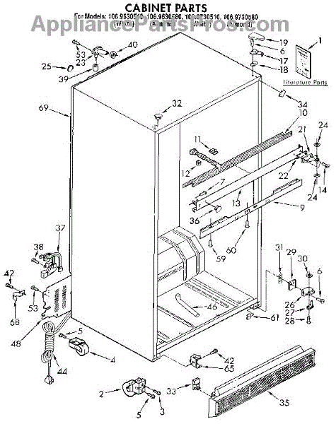 Parts for Kenmore 106.9730510 (1069730510, 106 9730510): Cabinet Parts
