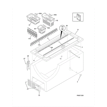 This full-width upper storage basket sits at the top of the freezer compartment. It hangs on the upper rails to keep smaller items organized and easy to reach, restoring usable space when the original basket is damaged or missing.