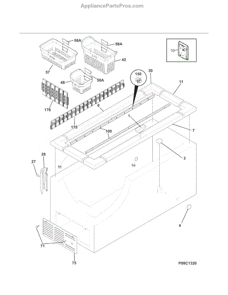 The Freezer Control Board is an OEM part for Frigidaire upright freezers. It houses the electronic components that regulate temperature settings and monitor performance.