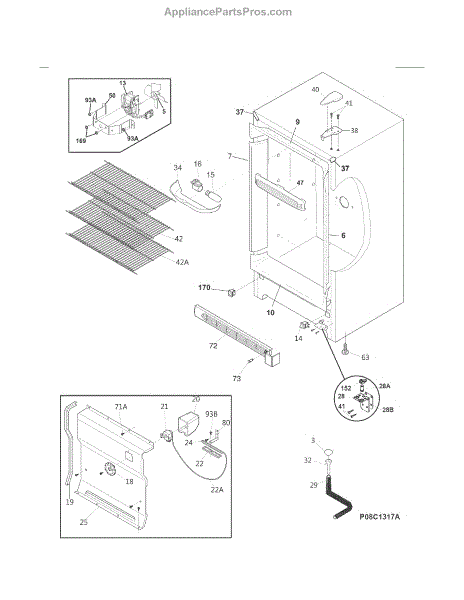 This freezer shelf creates a sturdy, level surface for storing frozen foods. Replacing a bent or missing shelf restores usable capacity and helps keep items organized, stable, and easy to access.