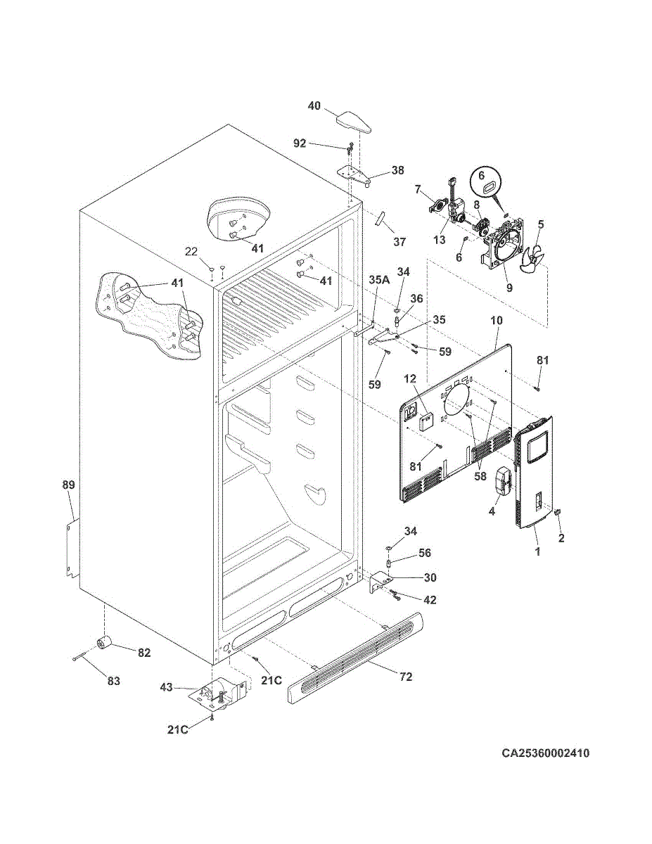 Refrigerator not cooling but freezer works? This evaporator fan cover and damper assembly directs airflow between compartments. Moderate DIY repair.