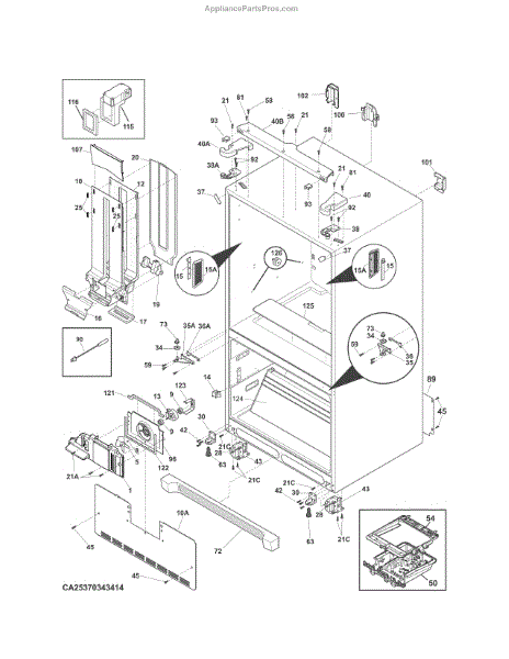 Parts for Kenmore 253.70342419 (25370342419, 253 70342419): Cabinet Parts