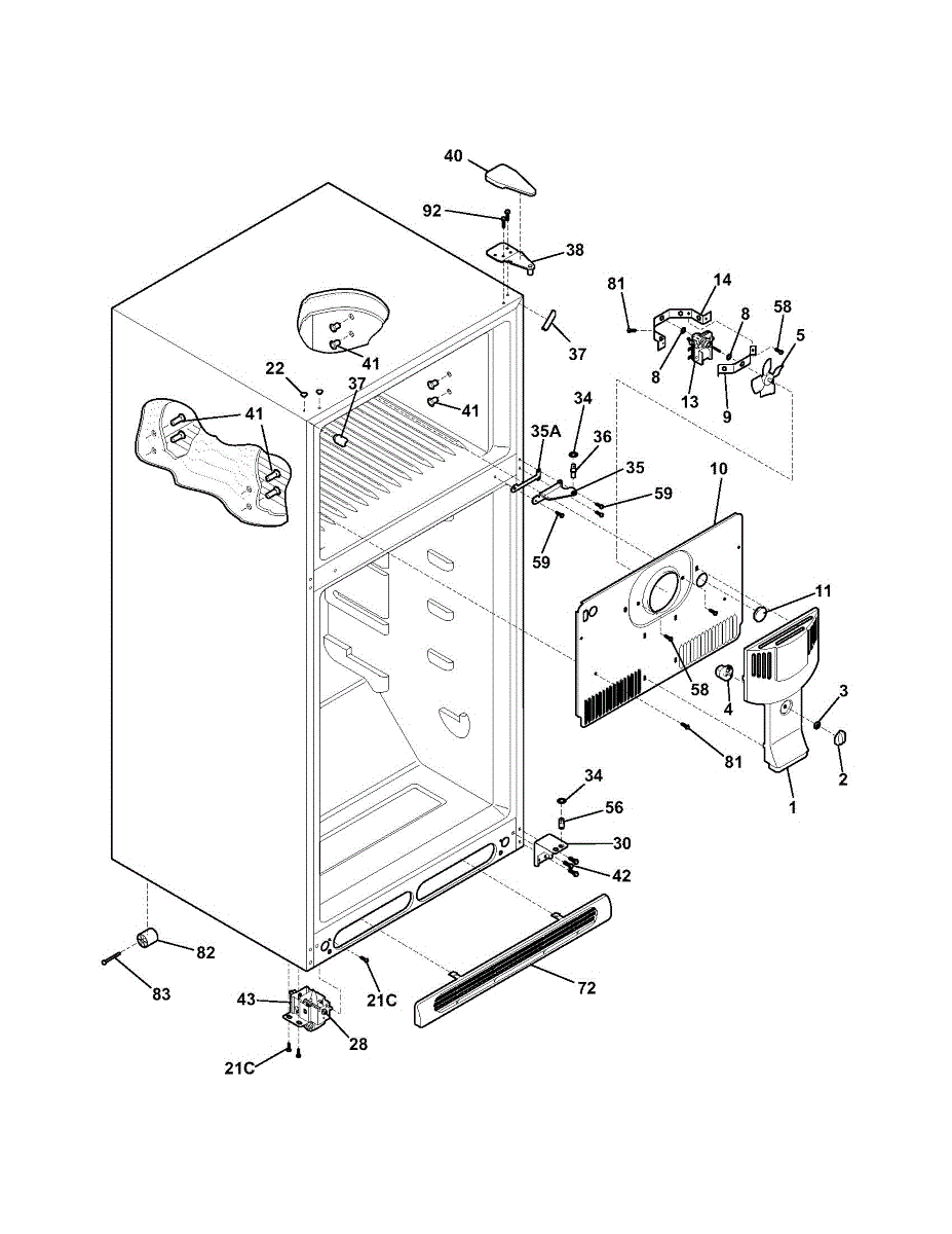 Wiring harness for top-mount refrigerators. Connects electrical components throughout the unit. Replace if wires are frayed, damaged, or connectors broken.