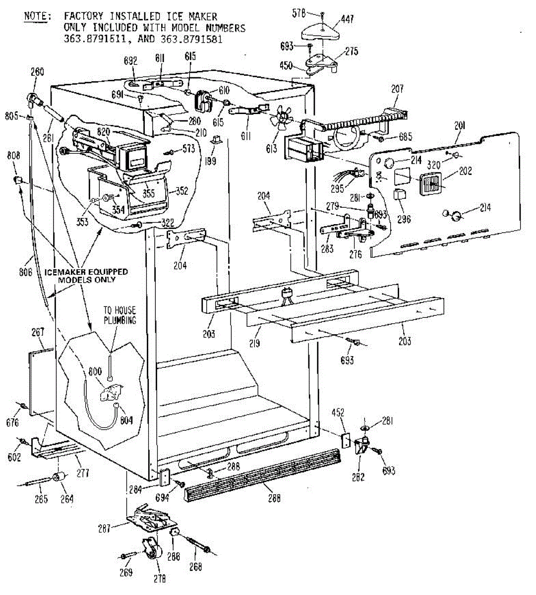 Parts for Kenmore 363.8691581 (3638691581, 363 8691581): Cabinet Parts