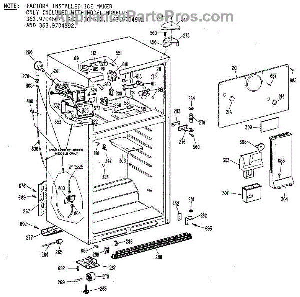 Parts for Kenmore 363.9604582 (3639604582, 363 9604582): Cabinet Parts