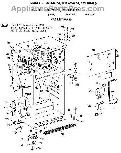 Parts for Kenmore 363.9614214 (3639614214, 363 9614214): Cabinet Parts
