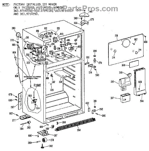 Parts for Kenmore 363.9614260 (3639614260, 363 9614260): Cabinet Parts
