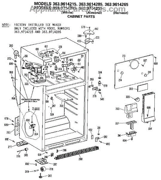 Parts for Kenmore 363.9614285 (3639614285, 363 9614285): Cabinet Parts