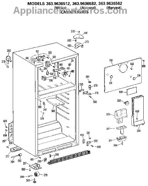 Parts for Kenmore 363.9636582 (3639636582, 363 9636582): Cabinet Parts
