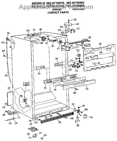 Parts for Kenmore 363.9715995 (3639715995, 363 9715995): Cabinet Parts