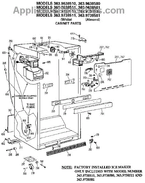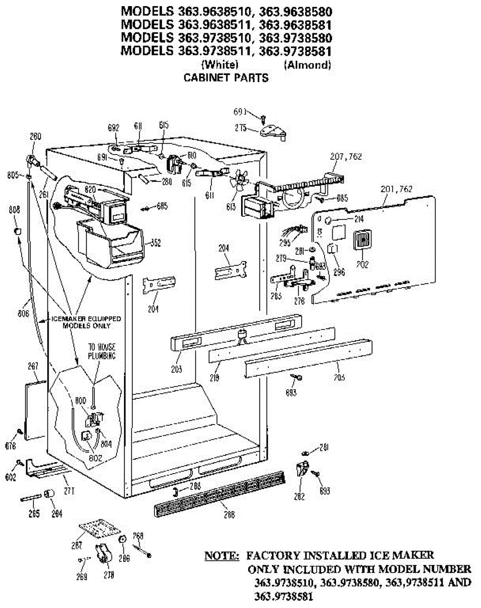 Parts for Kenmore 363.9738511 (3639738511, 363 9738511): Cabinet Parts