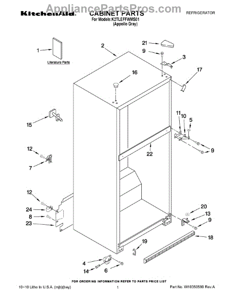 Parts for Kitchenaid K2TLEFFWMS01: 01 - Cabinet Parts