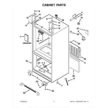 The Roller Assembly is an OEM part for Whirlpool refrigerators. It contains heavy-duty ball bearing rollers located along the bottom front-right cabinet. Repeatedly maneuvering fully-loaded refrigerators can cause cabinet rollers to crack or bearing races to deteriorate over extended use. Potential failure causes include structural cracks from strong impacts or bearing lubrication washing away from repeated wet cleaning. Symptoms of faulty cabinet rollers include: