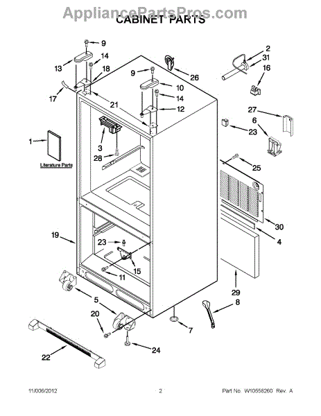 The Leveling Leg is an OEM replacement part for Whirlpool refrigerators. It is one of four legs situated internally at the base corners for proper tilt positioning. It raises or lowers each leg independently to stabilize units on uneven kitchen floors. Causes of replacement consist of wear from continual torque required during positioning processes. Thread damage or corrosion buildup attributable to floor locations over extended use necessitates periodic renewal as well. Symptoms involve: