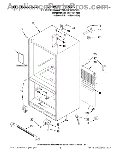 The Roller Assembly is an OEM part for Whirlpool refrigerators. It contains heavy-duty ball bearing rollers located along the bottom front-right cabinet. Repeatedly maneuvering fully-loaded refrigerators can cause cabinet rollers to crack or bearing races to deteriorate over extended use. Potential failure causes include structural cracks from strong impacts or bearing lubrication washing away from repeated wet cleaning. Symptoms of faulty cabinet rollers include: