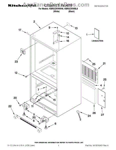 The Leveling Leg is an OEM replacement part for Whirlpool refrigerators. It is one of four legs situated internally at the base corners for proper tilt positioning. It raises or lowers each leg independently to stabilize units on uneven kitchen floors. Causes of replacement consist of wear from continual torque required during positioning processes. Thread damage or corrosion buildup attributable to floor locations over extended use necessitates periodic renewal as well. Symptoms involve: