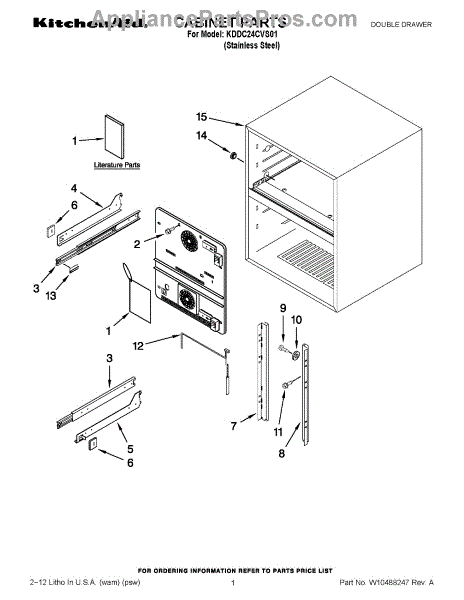 Sliding track rail assembly for refrigerator drawers. Restores smooth opening and closing when original rails are damaged, worn, or broken.