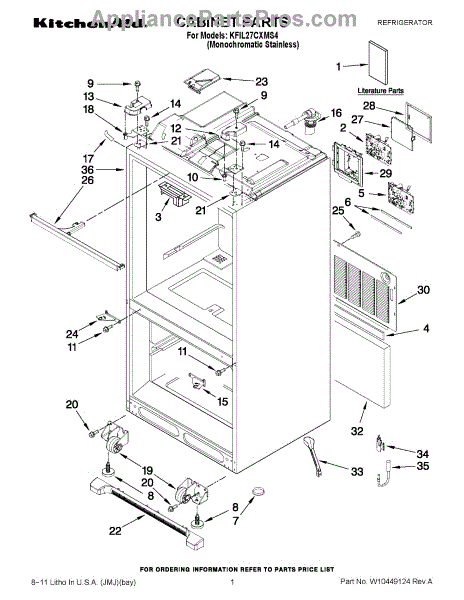 Parts for Kitchenaid KFIL27CXMS4: 01 - Cabinet Parts