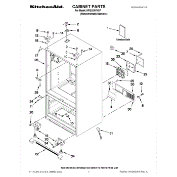 Parts for Kitchenaid KFIS20XVMS7: 01 - Cabinet Parts