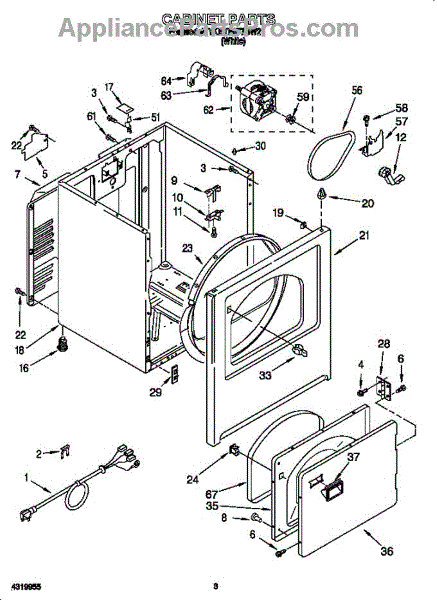 Fits all Whirlpool-made dryers (Whirlpool, Kenmore with prefix 110, Roper, KitchenAid, and Estate). Matching belt 341241 and rear support rollers 349241T. Whirlpool dryer repair manual 677818L.