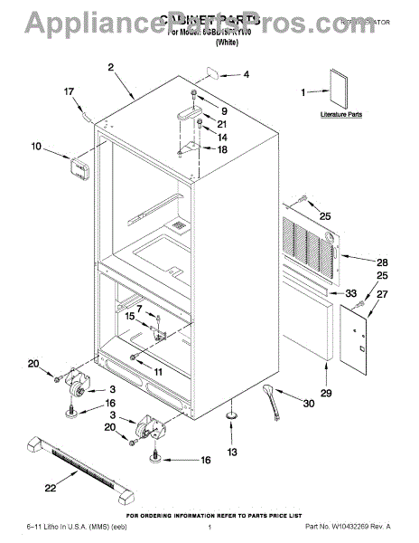 The Leveling Leg is an OEM replacement part for Whirlpool refrigerators. It is one of four legs situated internally at the base corners for proper tilt positioning. It raises or lowers each leg independently to stabilize units on uneven kitchen floors. Causes of replacement consist of wear from continual torque required during positioning processes. Thread damage or corrosion buildup attributable to floor locations over extended use necessitates periodic renewal as well. Symptoms involve: