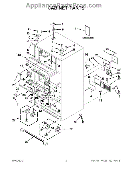 The Leveling Leg is an OEM replacement part for Whirlpool refrigerators. It is one of four legs situated internally at the base corners for proper tilt positioning. It raises or lowers each leg independently to stabilize units on uneven kitchen floors. Causes of replacement consist of wear from continual torque required during positioning processes. Thread damage or corrosion buildup attributable to floor locations over extended use necessitates periodic renewal as well. Symptoms involve: