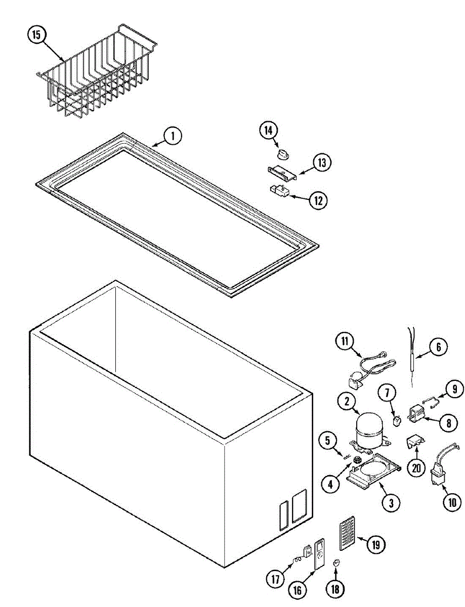 Control box housing for freezers and chest freezers. Protects electrical controls from damage. Replace if cracked, broken, or missing to secure wiring.